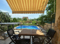 Высажены деревья, плодоносят персик, яблоко, орех, абрикос, виноград, хвойные, розы, грядки. Все коммуникации проложены и разведены: водопровод, канализация, отопление, котёл, ёмкости для запаса питьевой воды. Есть кондиционеры. Дом утеплён под энергосбережение. Электропитание дома трёхфазное, газ, выгребная яма за воротами 10 кубов. Полное освещение участка. Море частично видно со второго этажа. Хорошие соседи.
