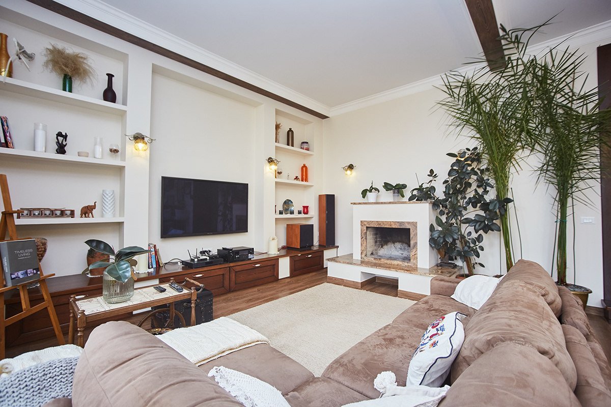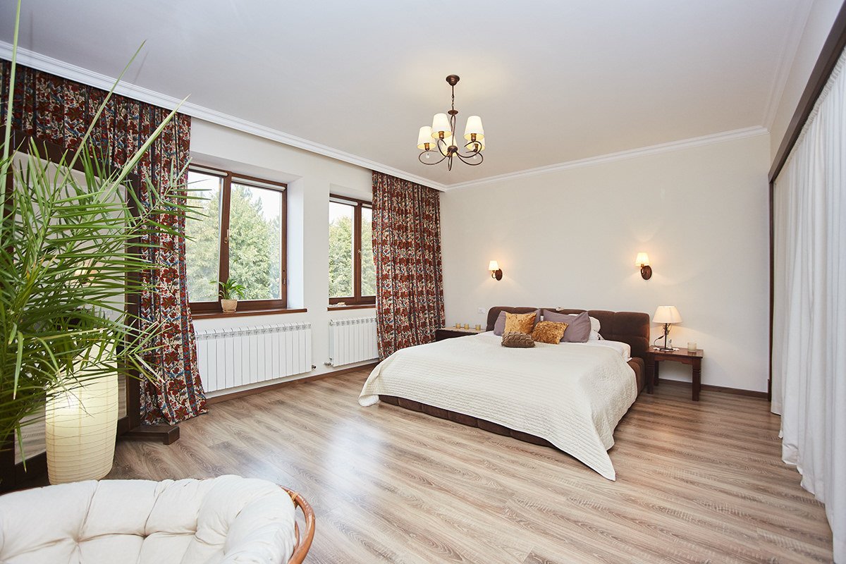Дом занимает площадь 270 кв. м., распланирован: кухня-студия с большой гостиной, в которой уютно расположен действующий камин, 4 спальни (одна из них - мастер-спальня со своим санузлом), 2 дополнительных санузла, холл.