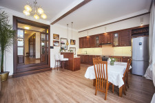 Лестница деревянная. Покрытие полов - плитка, есть подогрев полов.