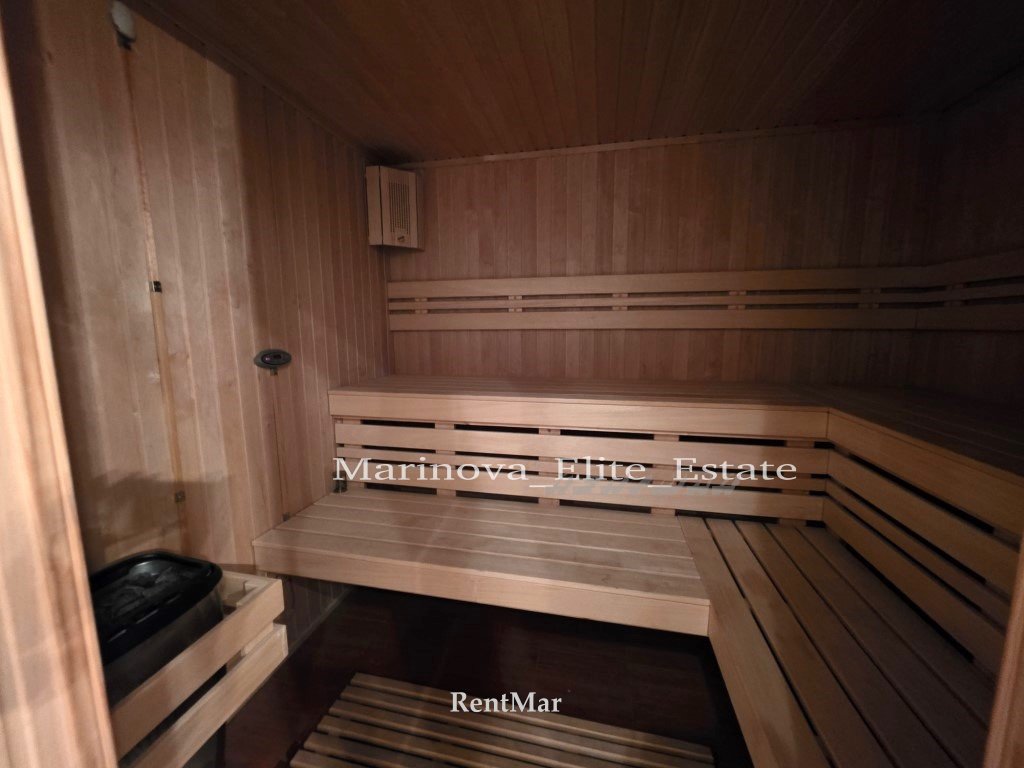 Большой холл с зоной для отдыха Санузел с душевой кабиной, ванной и сауной.