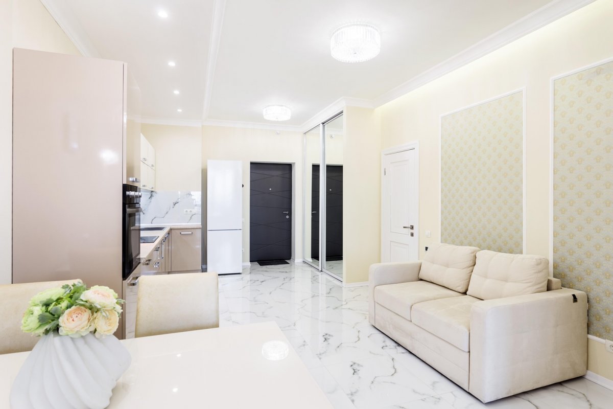 07202 - Новая белоснежная стильная квартира ЖК Башня Чкалов, дизайнерский ремонт общ 65 кв м, кухня-студия, отдельная спальня с большой гардеробной, с/у, душ. ЖК «Башня Чкалов» Высококачественный дорогой ремонт, абсолютно вся мебель и техника. посудомоечная машина, стиральная и сушильная машины. Прекрасный вид на город и Море!. В жилом комплексе спортивный зал для жильцов, атриум, 3 лифта (из них 2 панорамных), на 5-м этаже зона отдыха с лаунж-зоной, детская площадка, прорезиненная зона для бега. Круглосуточная охрана, видеонаблюдение Цена 900 у. е в мес