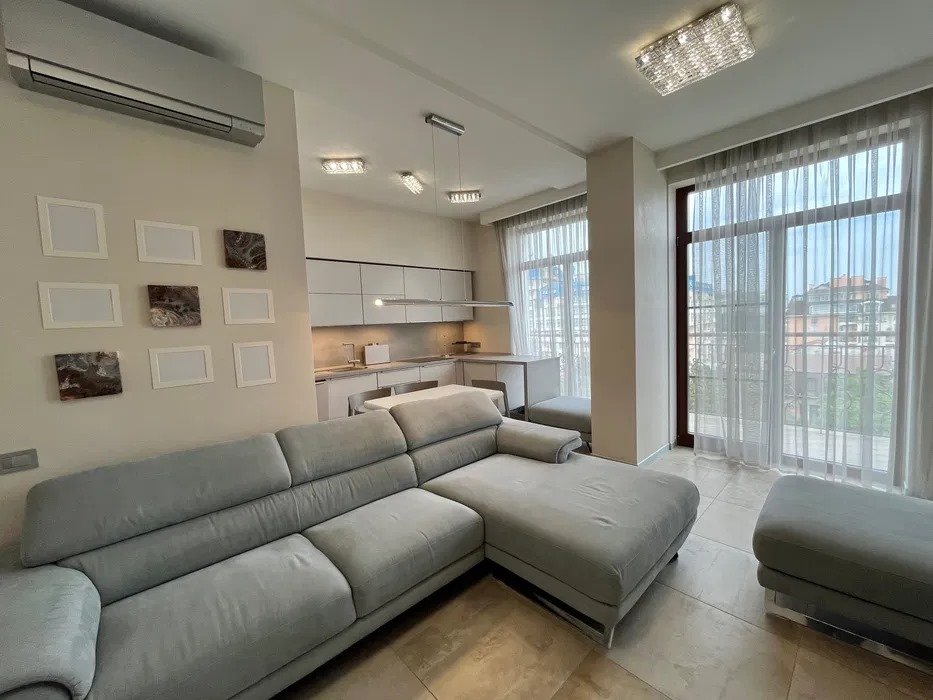 50% комісія08648 Аренда 3х комнатной квартиры на Французском бульваре. Квартира расположена в элитном районе города в жилом комплексе «Крит», неподалёку от театра Музкомедии. Квартира расположена на 9 этаже 11-этажного клубного дома, который имеет подземный паркинг (в стоимость аренды включено 2 паркоместа) и небольшой закрытый двор. Из паркинга можно подняться на лифте на ваш этаж, не выходя на улицу. Квартира с кухней-студией и двумя спальнями общей площадью 70 кв. м, с дизайнерским современным ремонтом. Площадь использована максимально эргономично и функционально. При входе: небольшой тамбур с большим шкафом-купе для верхней одежды и обуви. Далее вы попадаете в светлую и просторную гостиную с большим комфортабельным диваном и телевизором, а также панорамными окнами и выходом на балкон с видом на море и Французский бульвар. Кухня оборудована современной, высококачественной техникой Siemens: кофемашина, духовка, посудомойка, варочная панель, холодильник Liebherr. Спальня имеет комфортную большую кровать, столик для макияжа, гардеробную с сушильной машиной Siemens, выход на балкон с панорамным видом на море. Детская также имеет свою гардеробную, панорамные окна и выход на балкон с видом на море. Ванная эргономичная и удобная с стиральной машиной Siemens, ванной и бойлером. Цена 1 200 дол, за дополнительную плату- 2 места в подземном паркинге