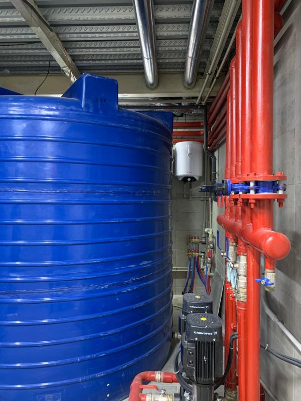 Лифт, система центрального кондиционирования, пожарная сигнализация, своё отопление, два котла. Мощность 200 квт. Во дворе парковка для машин.