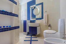 Для бесперебойного энергообеспечения имеется бензогенератор. Все окна и двери дома защищены роллетами, управляемыми с пульта. Преимущество этого дома- его расположение на некотором удалении от основной дороги (в переулке), что обеспечивает тишину и чистый морской воздух. До моря- 10 минут пешком. Участок имеет зелёный газон, которые обслуживаются садовником. Предоставляется летний инвентарь (стол, стулья, шезлонги), площадка для барбекю