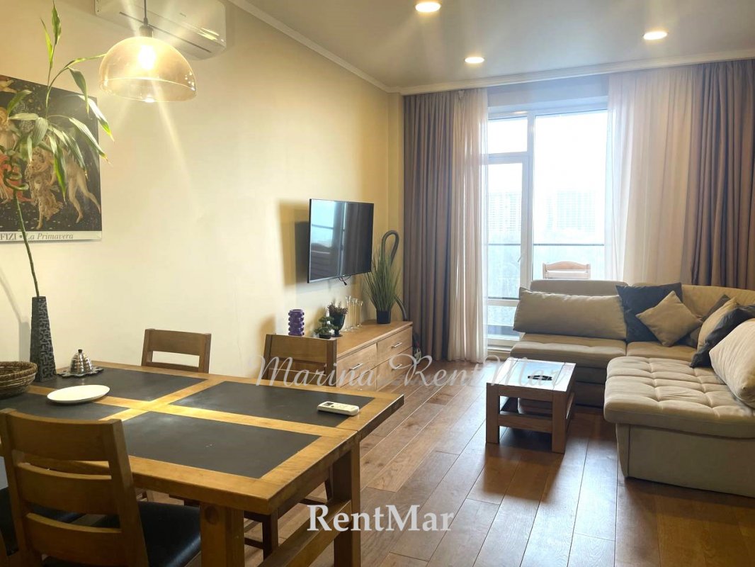 07960 Предлагаем квартиру с потрясающим видом на море! общ пл. 73 м2 ЖК Гринвуд Французский бульвар 85/5. Просторная кухня-студия со всей кухонной мебелью и техникой, большой диван. 2 отдельные спальни, 2 санузла. В квартире сделан современный дизайнерский ремонт, новая мебель и техника. Кондиционер, духовка, холодильник, стиральная машина, телевизор, микроволновка, посудомойка, бойлер и т. д.