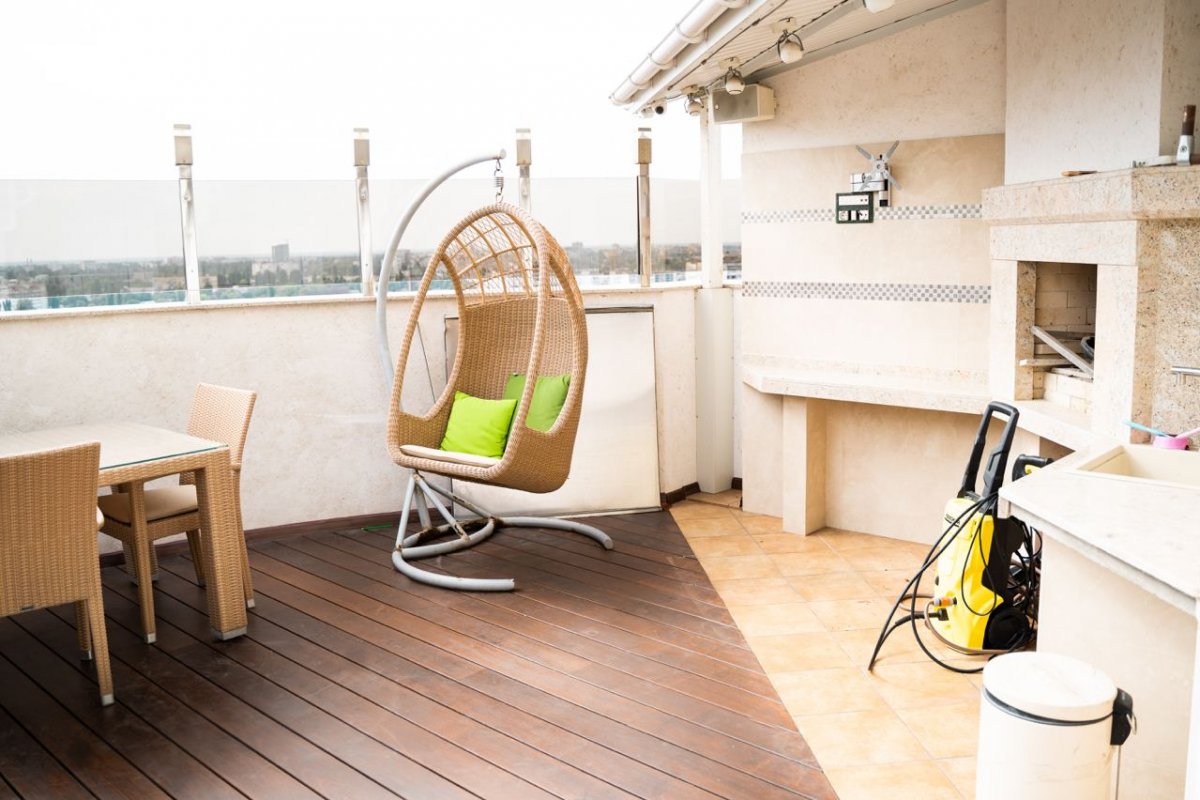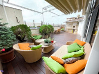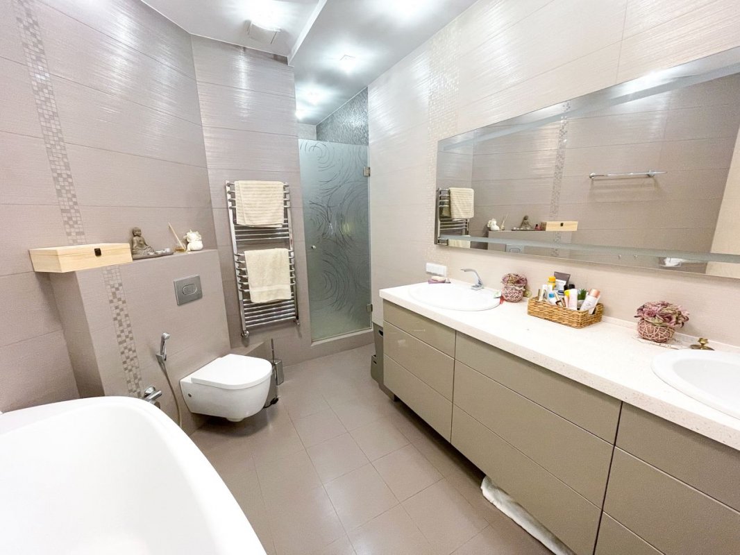 08693 Видео по запросу! Пентхаус на Говорова, парк Победы. Красивая светлая многоуровневая квартира в Гранд Парке, окна выходят не на море. 3 уровня. Первый уровень- 3 спальни, гардеробные, кладовые, прихожая и санузел с ванной и душевой. Второй уровень - кухня-гостиная-студия 56 квадратов. Терраса 46 м., санузел. Вся техника Бош, Горение. Тёплые полы, мангал, на террасе все для отдыха. Гамак, мебель, мангал, цветы, зелень. Третий этаж- комната отдыха, домашний кинотеатр, санузел. Сигнализация, умный дом, камеры. Автономный электрогенератор в доме, уборщица 2 раза в неделю в квартире входит в стоимость.