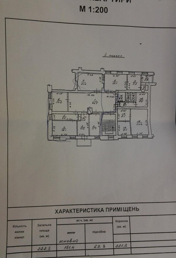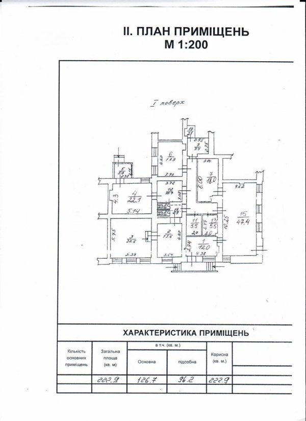 Первый этаж: 222.9 кв. м., 7 кабинетов, 2 санузла, 6 кондиционеров