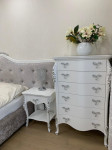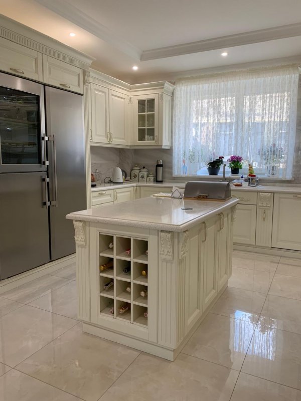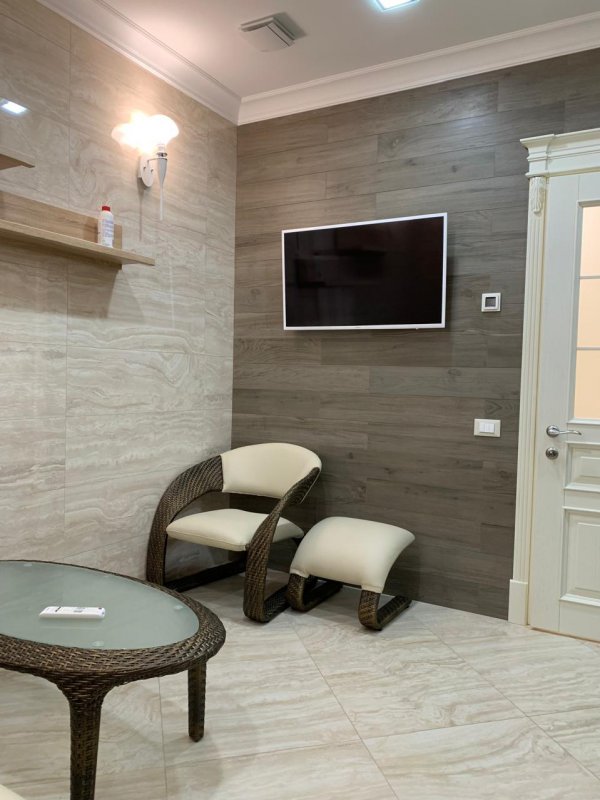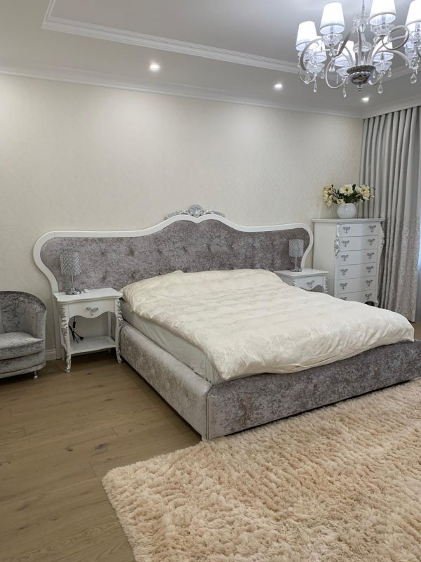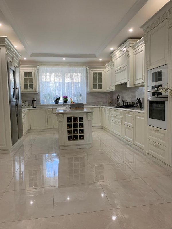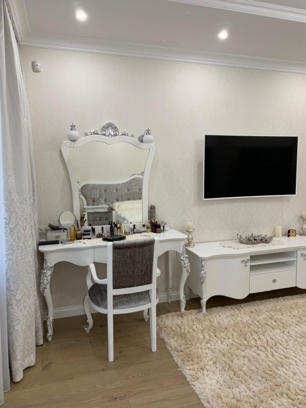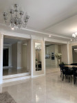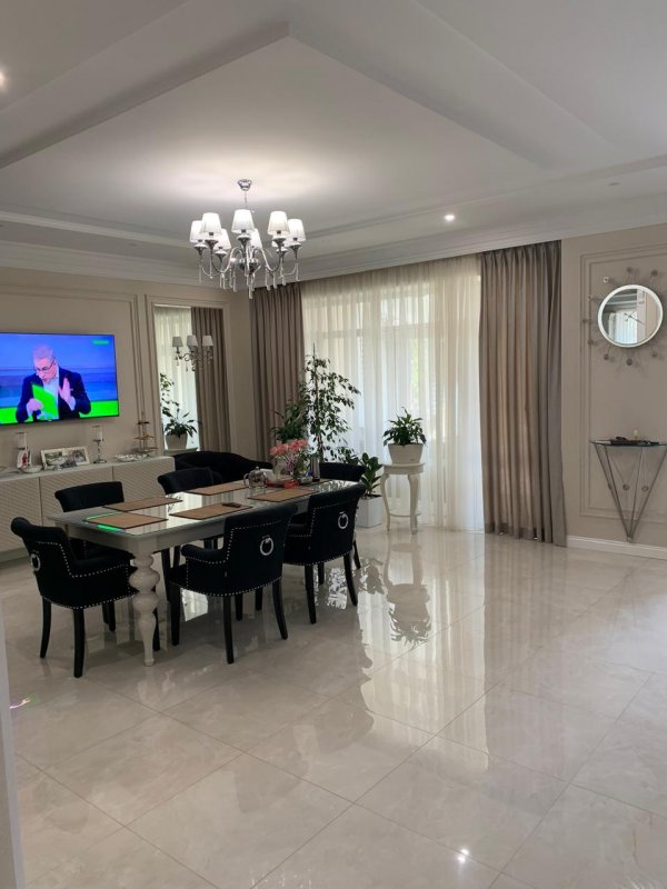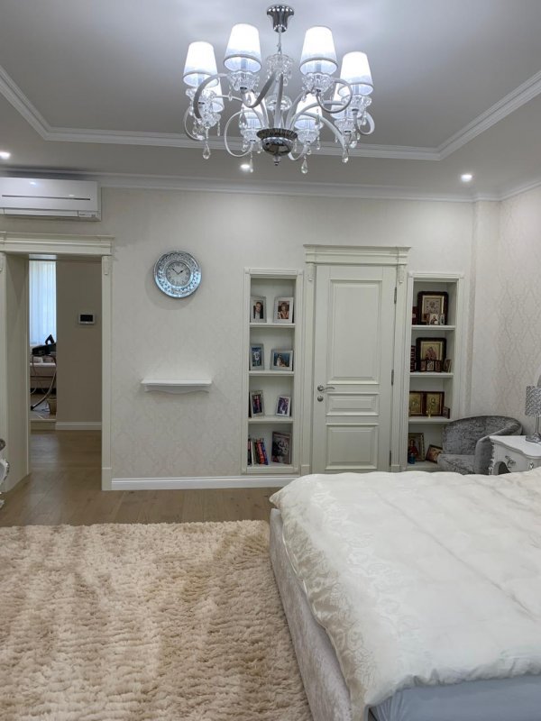 Ремонт выполнен из дорогостоящих натуральных материалов: паркет, мрамор. Мебель от ведущих брендов (Inch&Els), декор и люстры премиальных марок, сантехника Villeroy&Boch. Медная проводка, система автополива.