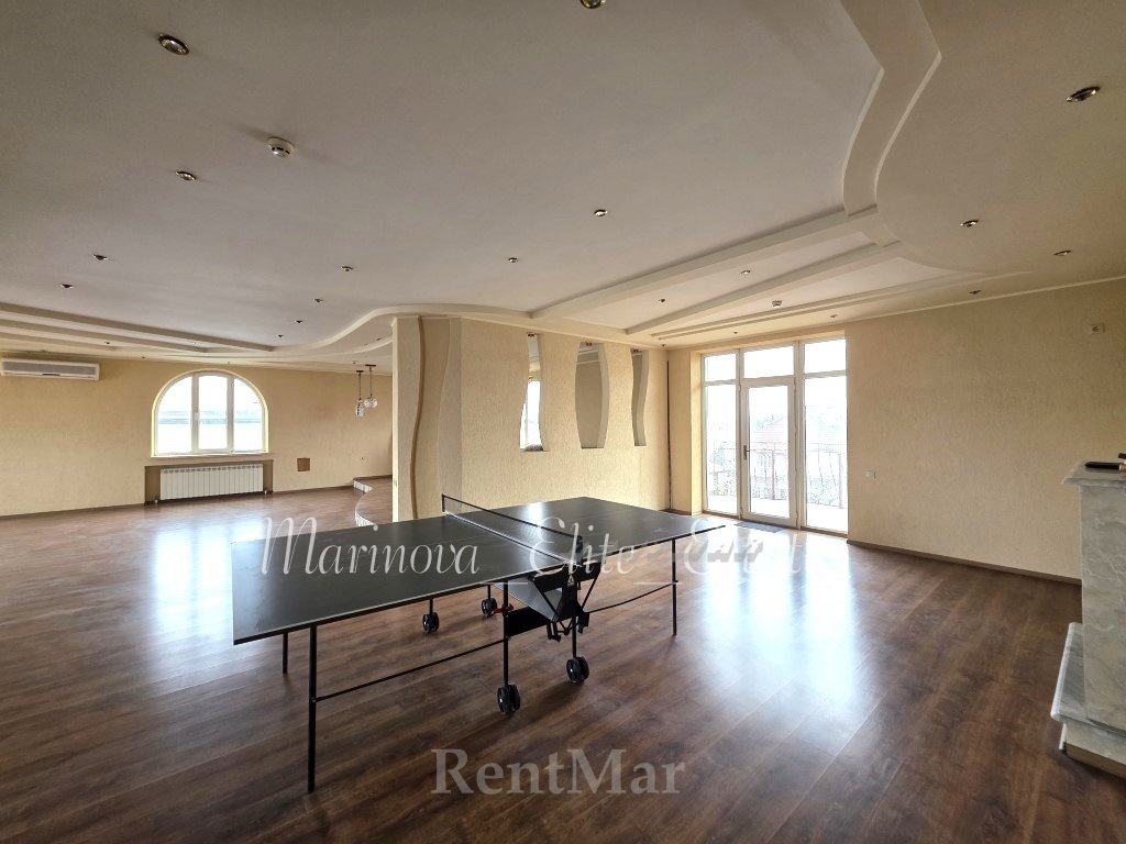 3 этаж: большое открытое пространство с мягкой зоной и камином, теннисный стол, спальня, гардеробная, санузел.