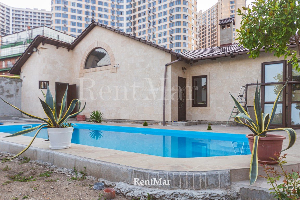 07300 Новый дом в Аркадии, закрытый кооператив. Общ пл 600 м2, участок 8 соток, 6 спален, 4 с/у, 2-кухни, одна из которых на 3-м этаже с выходом на террасу. Под всем домом -Жилой подвал!