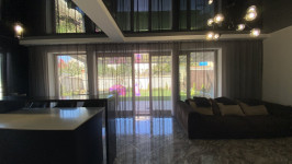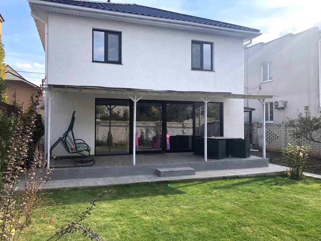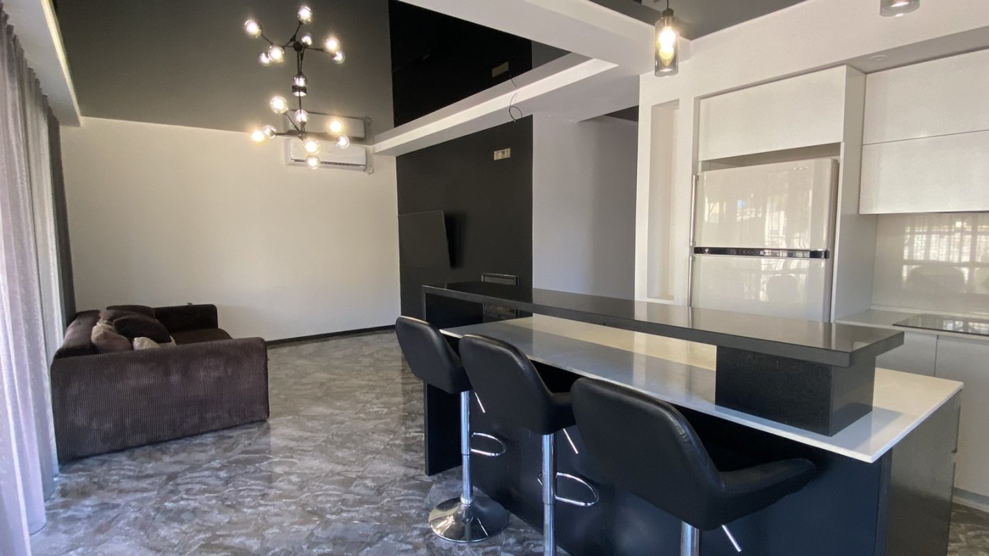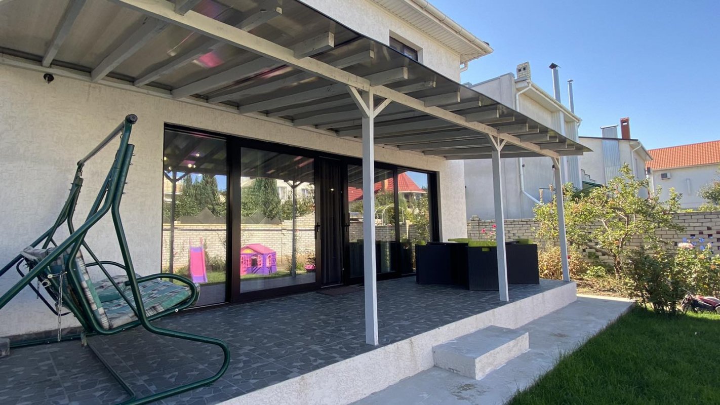 07385 Аренда нового стильного дома в Черноморке, закрытый охраняемый кооператив Луч. Площадь 120 кв. м., в доме 3 отдельные спальни, и гостиная-кухня-студия, духовка, телевизор, стиральная машина, посудомойка, 2 санузла (душевая+ ванная), автономное отопление, тёплый пол, роскошная терраса с мебелью. Красивый участок 4 сотки. Место для машины под навесом. 1 минута к морю.