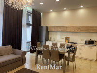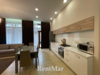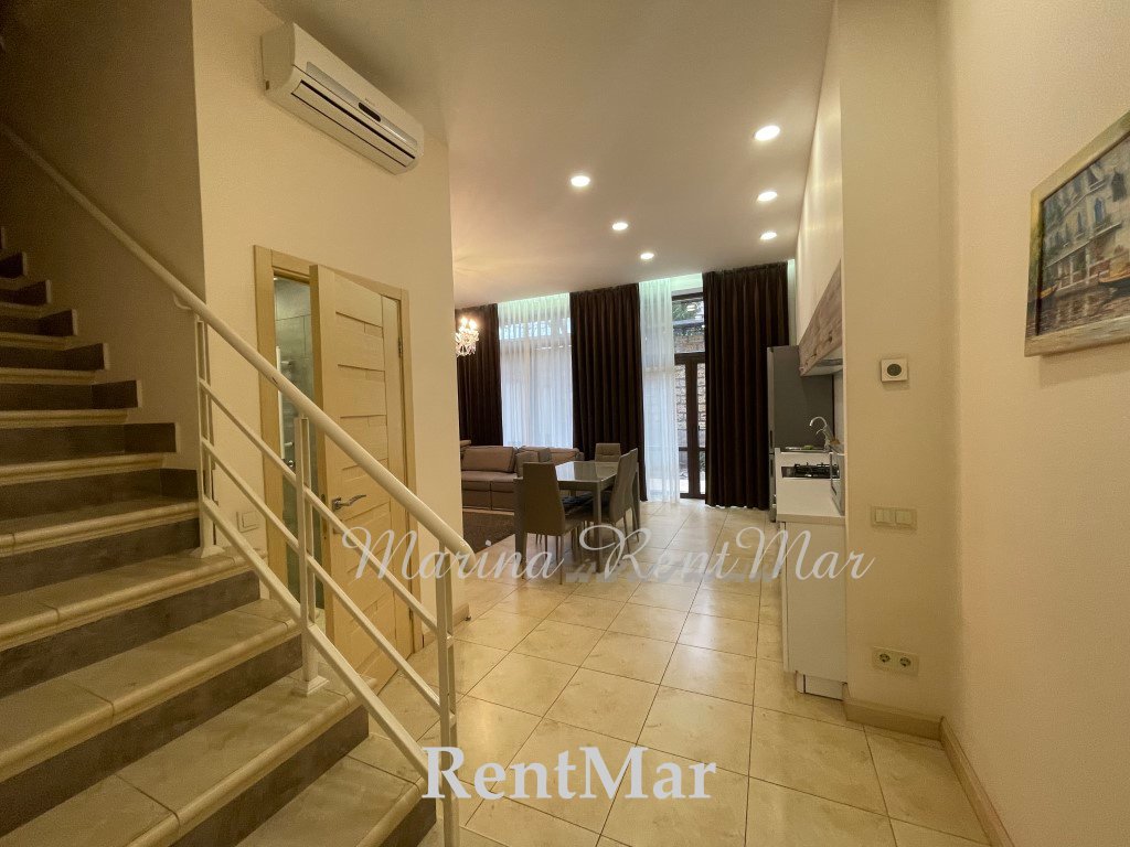 08045В Новый стильный коттедж Аркадия. Дорогой дизайнерский ремонт. Участок 1 сотка, зона отдыха, тихая летняя терраса с мангалом и ротанговой мебелью. Общая площадь дома 194 м2, большая кухня-студия, 4 отдельных спальни, 3 с/у. Стиль Хайтек, многоуровневое освещение, отделка дорогими материалами, декоративными элементами. 3 спальни с двуспальными кроватями, оборудованными гипоаллергенными матрацами, в гостиной на третьем этаже и кухне студии - раскладные диваны. Кухня-студия с газовой плитой, микроволновой печью, холодильником, электрочайником, посудомоечной машиной и набором посуды для сервировки стола и приготовления пищи. Везде кондиционеры, тёплый пол, электробойлер, гидрофор, двухконтурный котёл, стиральная машина, большие Lcd-телевизоры с IP-телевидением, много каналов на английском и других языках, Wi-Fi интернет, фен, утюг, гладильная доска. Гараж на 1 парко-место и одно парковочное место перед домом. Автономное тепло, водоснабжение. Круглосуточная охрана, видеонаблюдение, сигнализация. 1 900 у. е в месяц. круглогодично.