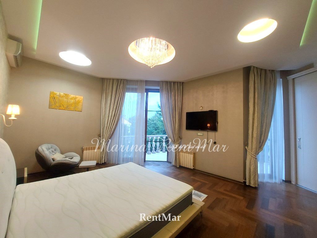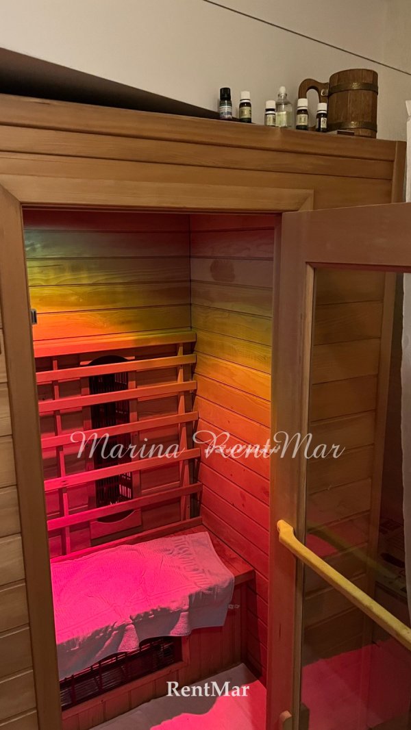 Есть цокольный этаж с комнатой отдыха, сауна инфракрасная, мансардный этаж с видом на море, зоной отдыха и гостевой комнатой