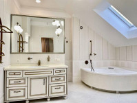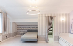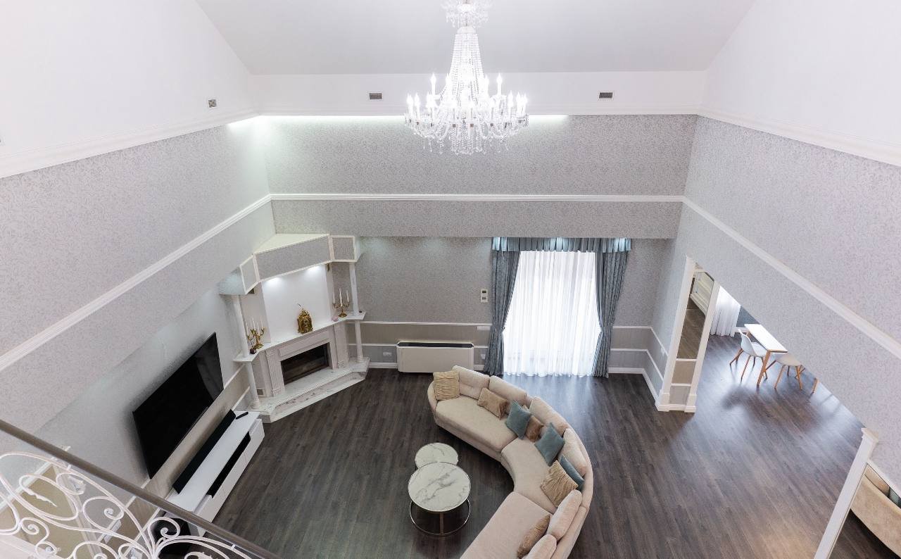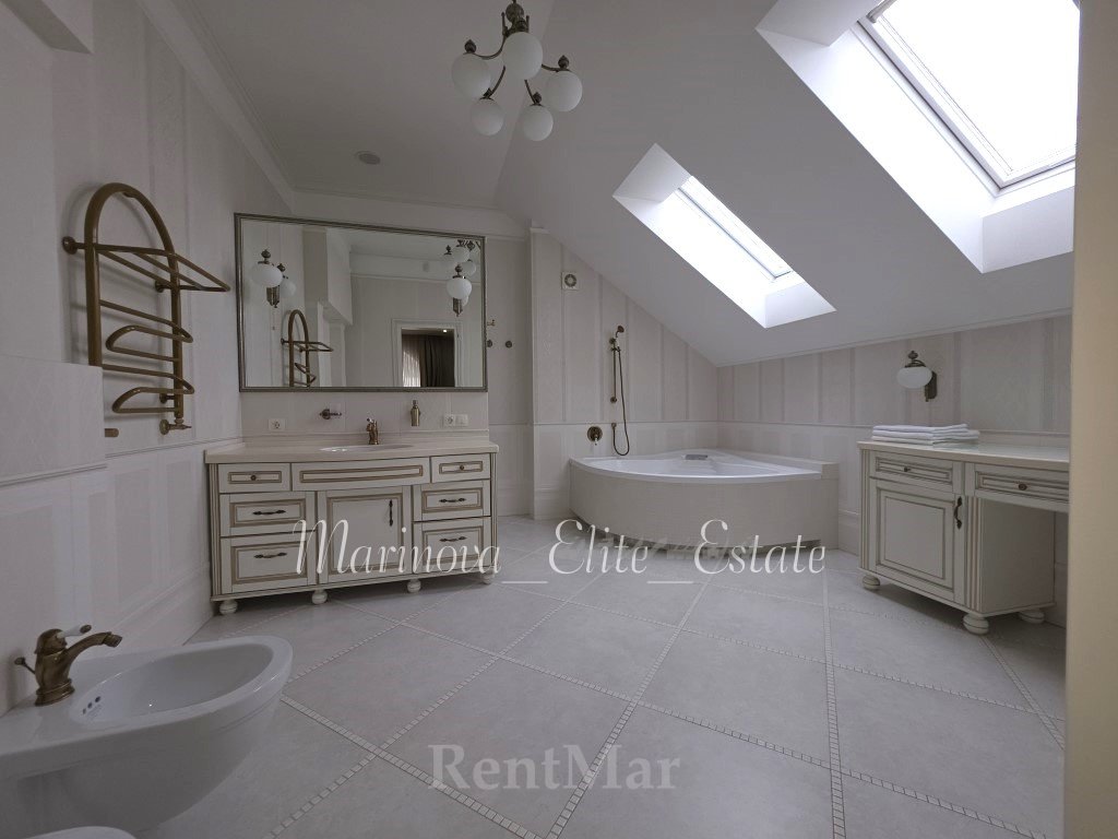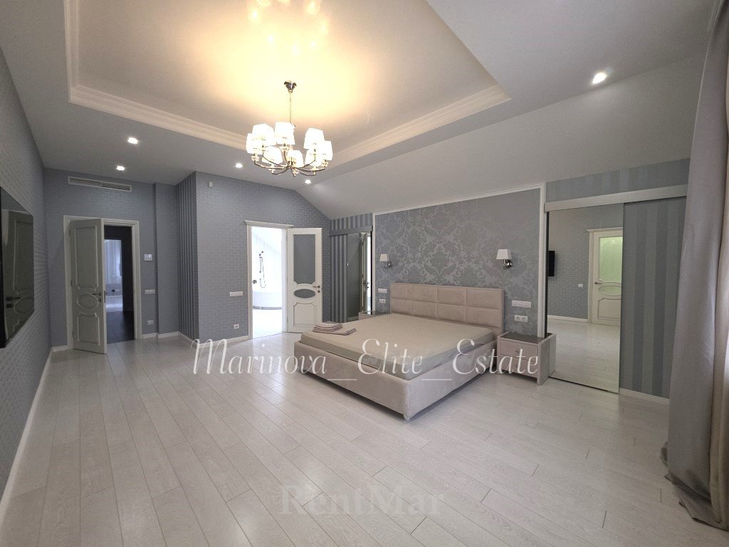 5 спален с гардеробными, 4 санузла, кабинет. Есть подвал.