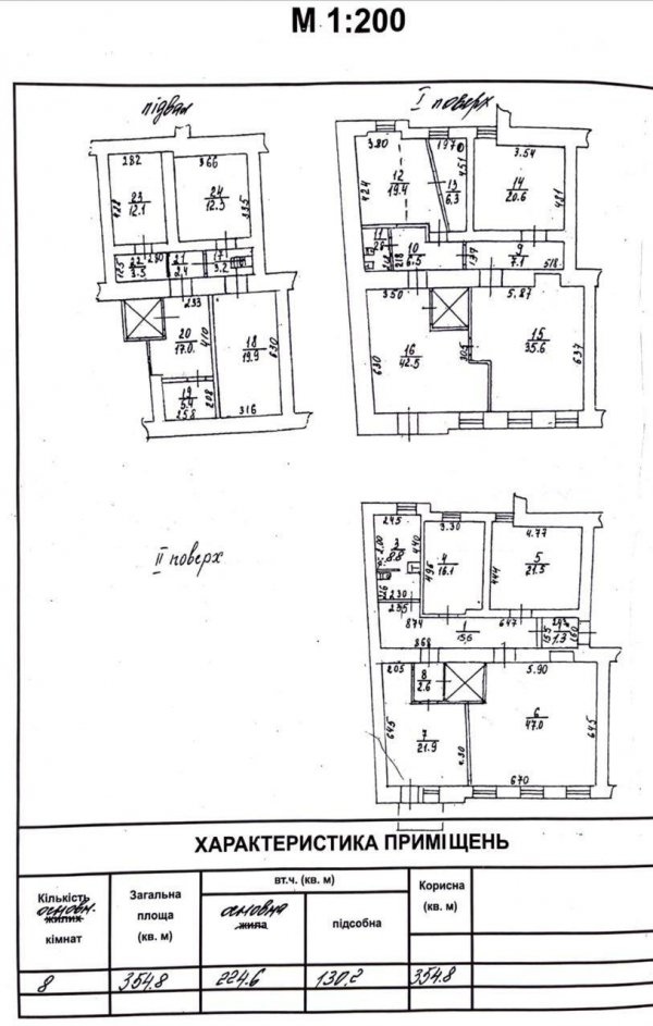 Общая площадь 354 кв. м. Всего 3-и уровня: 1-й и 2-й этажи- 280 кв. м., подвал 74 кв. м. (технические помещения, склад, убежище).
