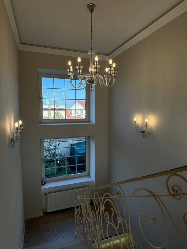 09337 Аренда нового современного дома на закрытой, круглосуточно охраняемой территории. Общая площадь 220 м2, 3 спальни, стильная гостиная. Есть подвал. Участок 6 соток, место для авто. Генератор.