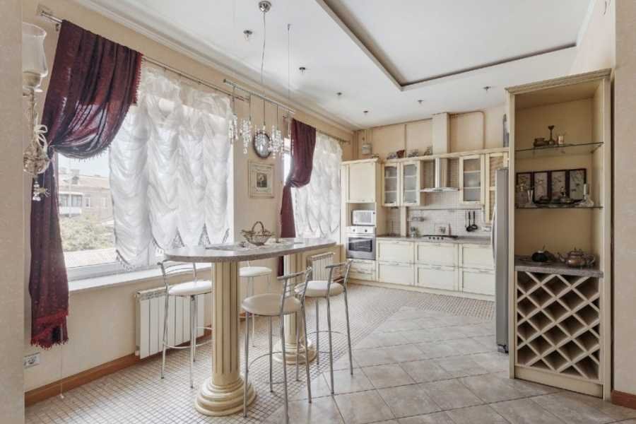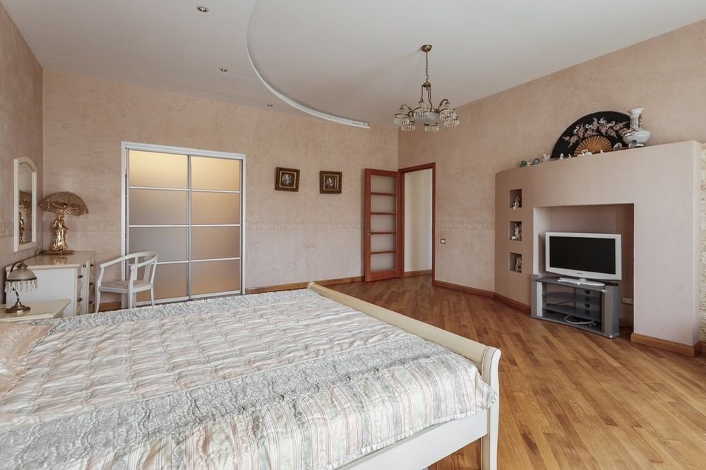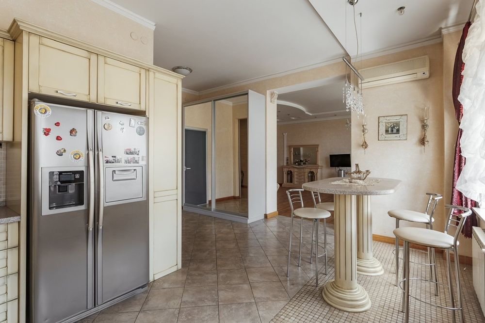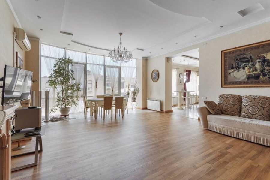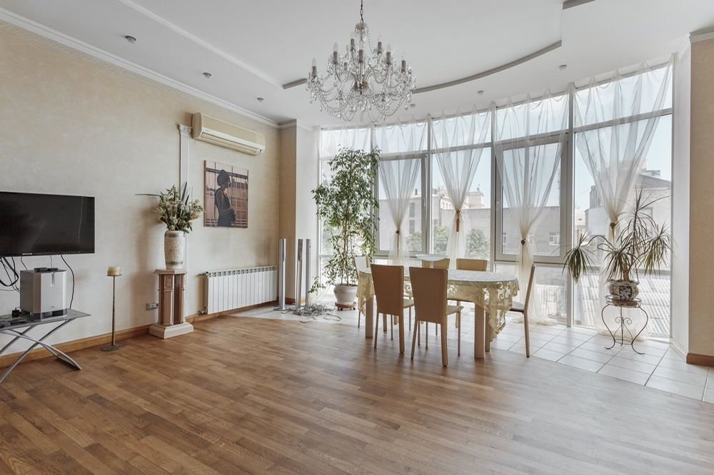 4 эт./5-ти эт. дома, общ пл 215 м., кухня-столовая, большая гостиная, 2 отд спальни, отд кабинет, 3 гардеробные комнаты, 2 санузла. Панорамные окна, Полностью укомплектована всей мебелью и техникой, есть сейф.