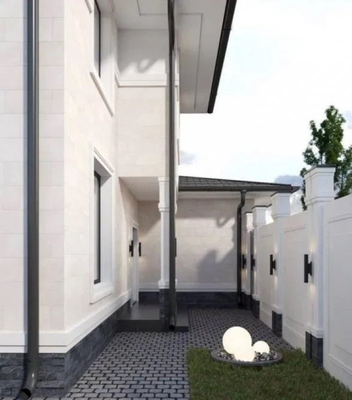 Дом расположен почти на 3 сотках вплотную к краю участка и за домом красивый прямоугольник для зоны барбекю и бассейна. Несколько соседей уже живут, другие на стадии финиша и вся улица фактически застроена.