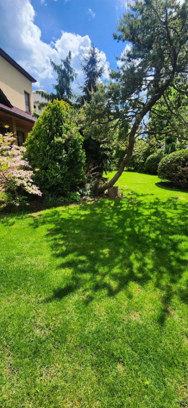 На территории шикарный ландшафтный дизайн, домик для охраны