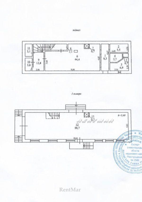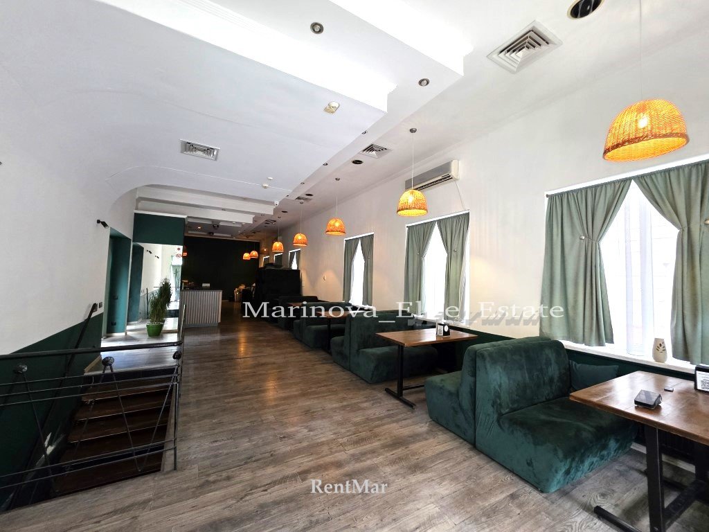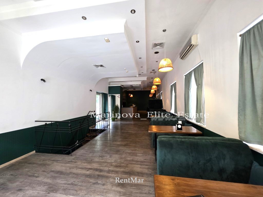 Площадь 190 кв. м., в двух уровнях. 1-й этаж -зал, в полуподвале туалеты, раздевалка и кухня.