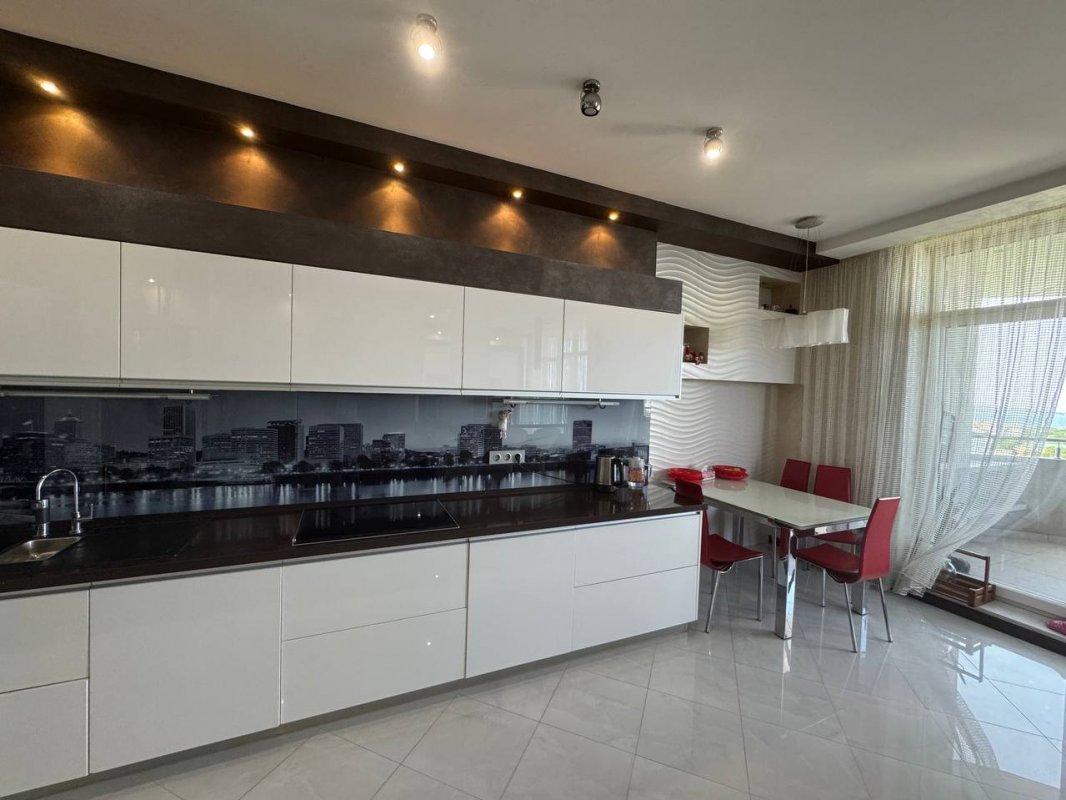 09286 4 комнатная квартира с открытой террасой и Панорамой Моря! Терраса 80 кв. м. пер. Мукачевский / Французский бул. Площадь 170 кв. м. Авторский дизайн. Всё дорого и со вкусом! Кухня-гостиная-студия, 3 спальни, 2 санузла, 2 гардеробные, постирочная комната для бытовых нужд. Автономия, генератор. Консьерж. Квартира достойна внимания! Показы в любое удобное для вас время! 370 000 у. е. Торг!